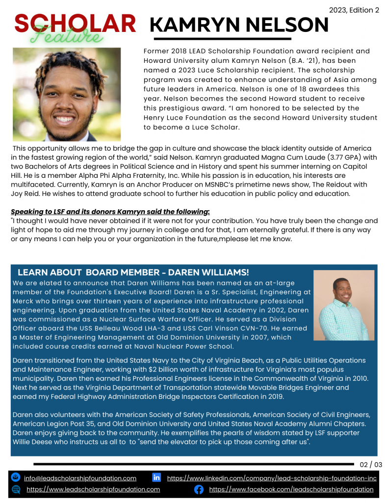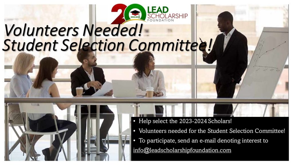 LEAD NEWS We are looking for volunteers to help us to select our next cohort of scholars! No experience required! Please contact us at info@leadscholarshipfoundation.com to sign-up!